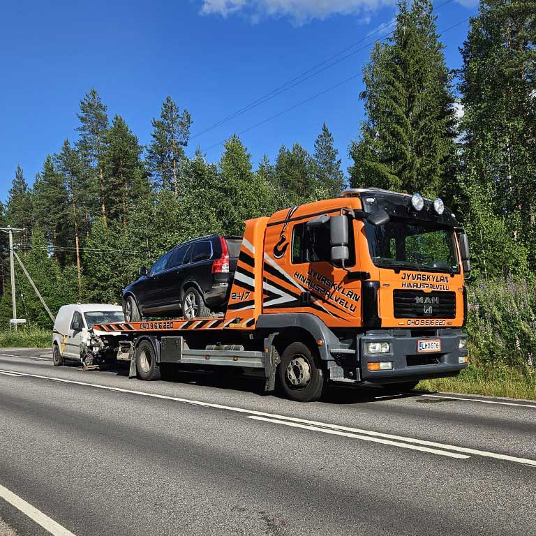 Jyväskylän Hinauspalvelu palvelee asiakkaita erilaisiin hinauspalveluin liittyvissä hinauksissa — aina moposta raskaaseen kalustoon — myös Hankasalmella.